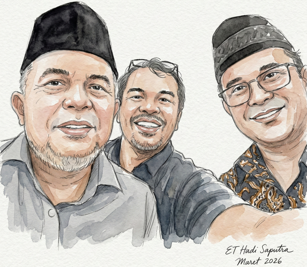 Namun, obrolan justru semakin “panas” dan mendalam setelah piring-piring dibersihkan. Diskusi berlanjut cukup lama, berbatang-batang rokok dan bergelas-gelas kopi menemani hingga malam semakin larut. Di sudut ruang makan itu, di seberang danau UI, kami seolah bertransformasi menjadi semacam “presidium illuminati konstitusional”. Ada frekuensi yang sama bahwa tahun 2026 ini adalah momentum krusial yang tak boleh dilewatkan untuk menyelamatkan bangsa. Cukup sudah penderitaan rakyat yang dirasa terlalu panjang; kini saatnya gas poll di setiap lini pengabdian. Tentu saja, apa yang kami bedah malam itu harus tetap menjadi rahasia—terlalu bahaya jika dibocorkan ke publik sekarang.